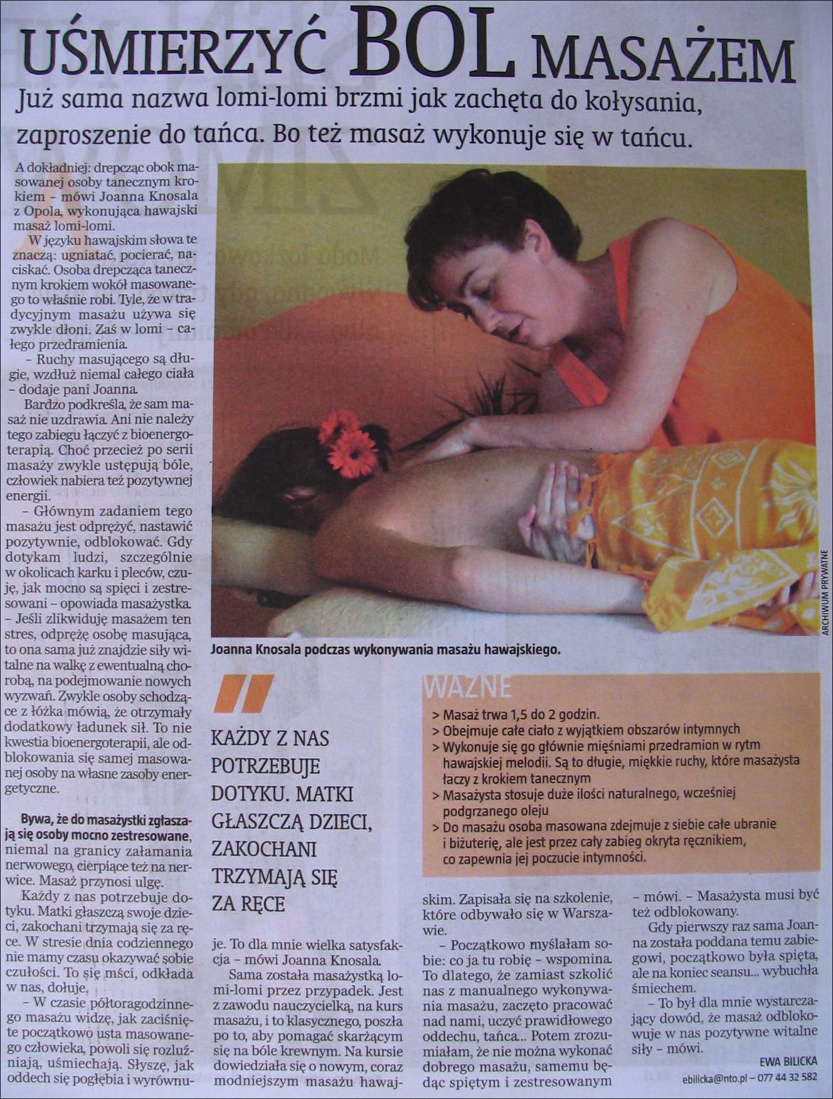 ..:: artykuł "uśmierzyć ból masażem" - 4-5.11.2006 ::..